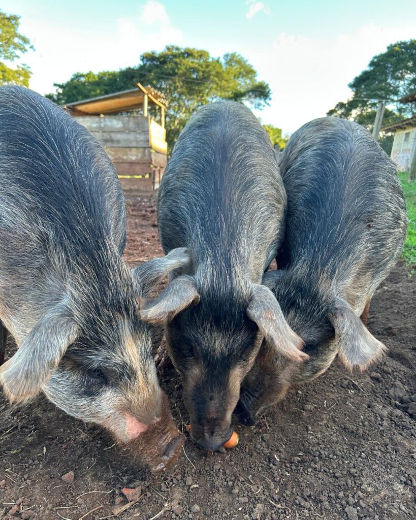 A criação em sistema de piquete, ou extensivo, praticada com porcos crioulos, permite aos animais expressarem comportamentos naturais como interações sociais, pastejo, além de poder fuçar e explorar livremente o ambiente.